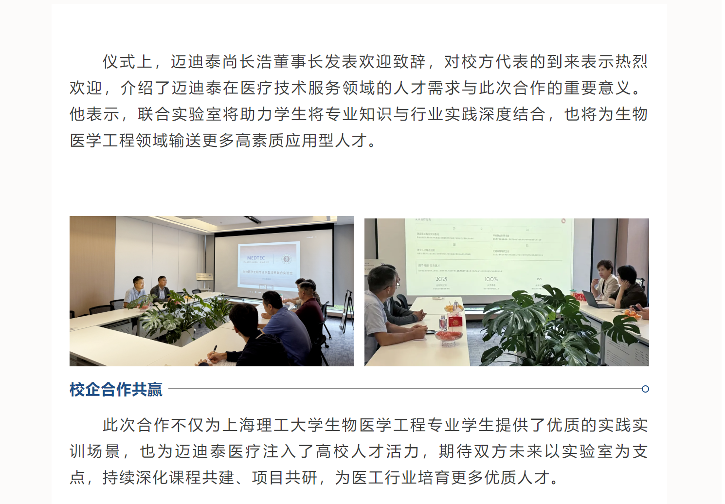 产学协同育英才,迈迪泰与上海理工大学共建联合实验室!